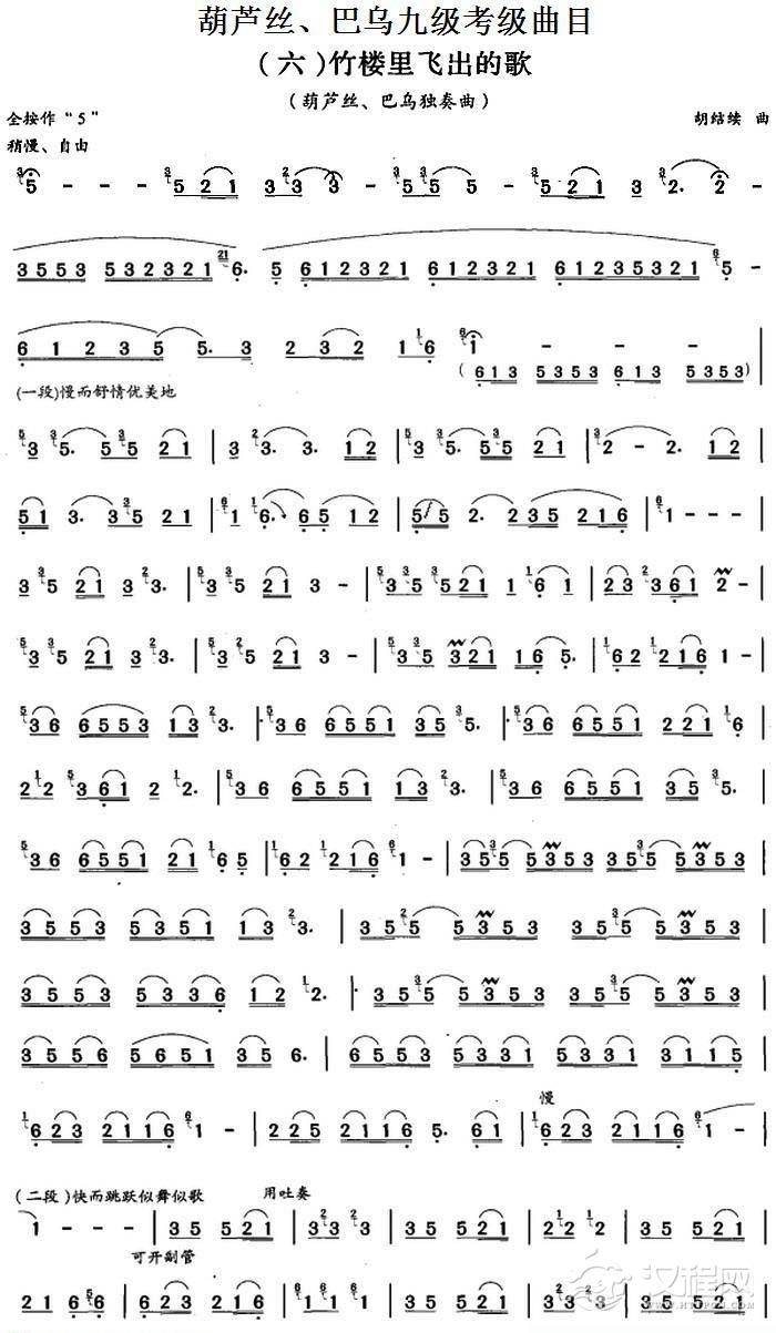 曲谱大全巴乌七级考级曲目练习曲谱