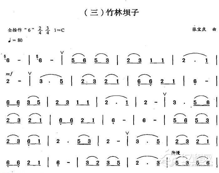 曲谱大全巴乌简谱《竹林里飞出小孔雀》