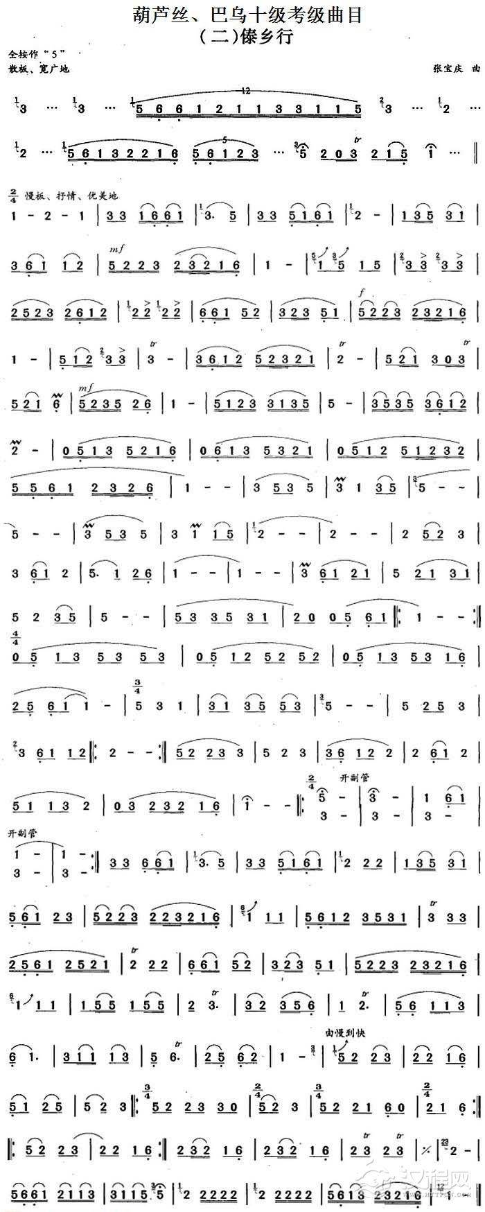 曲谱大全巴乌简谱《竹林坝子》
