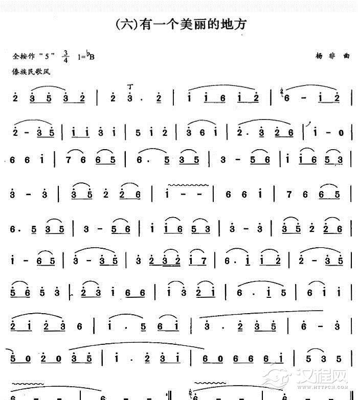 曲谱大全巴乌初级独奏曲《有一个美丽的地方/杨菲曲》简单的巴乌乐曲
