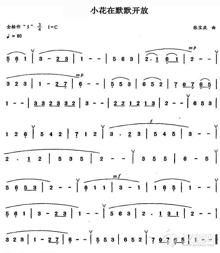 巴乌简谱《小花在黙黙开放》