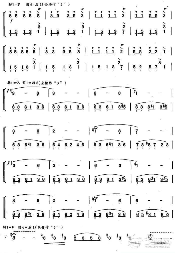 曲谱大全巴乌简谱《月光下的凤尾竹》