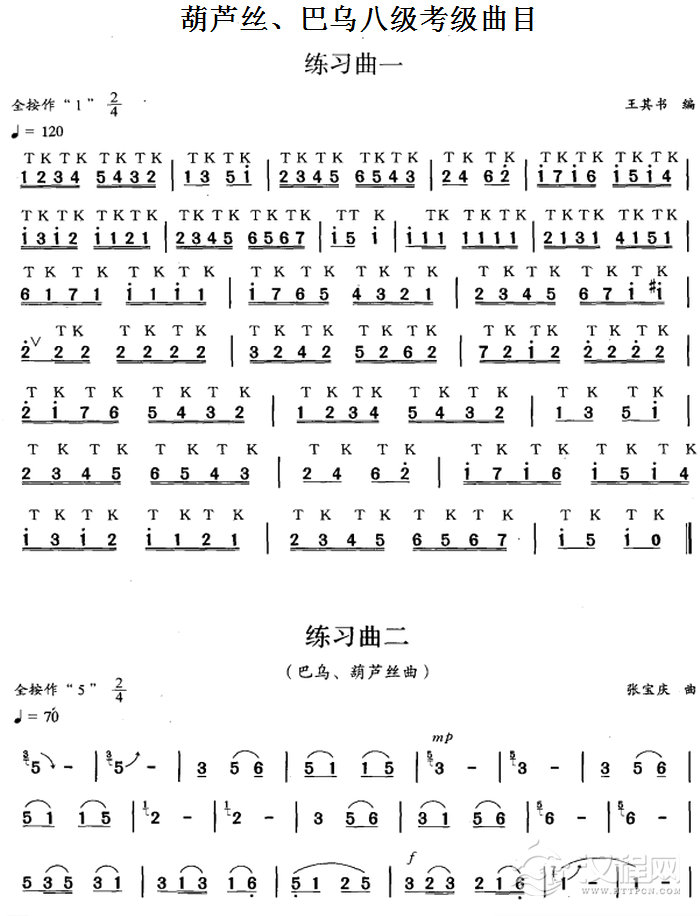 曲谱大全巴乌二级考级曲目练习曲谱