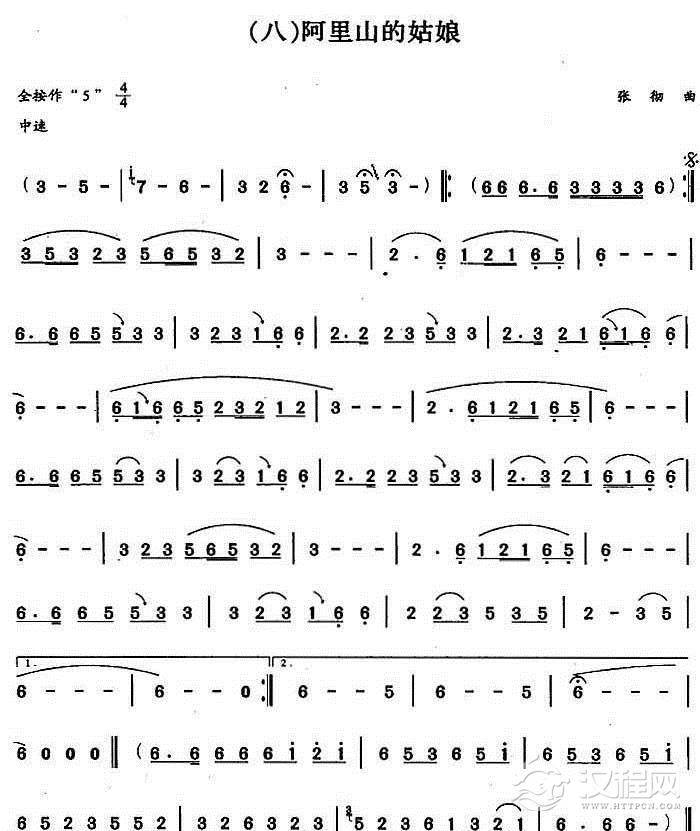 巴乌简谱《阿里山的姑娘》