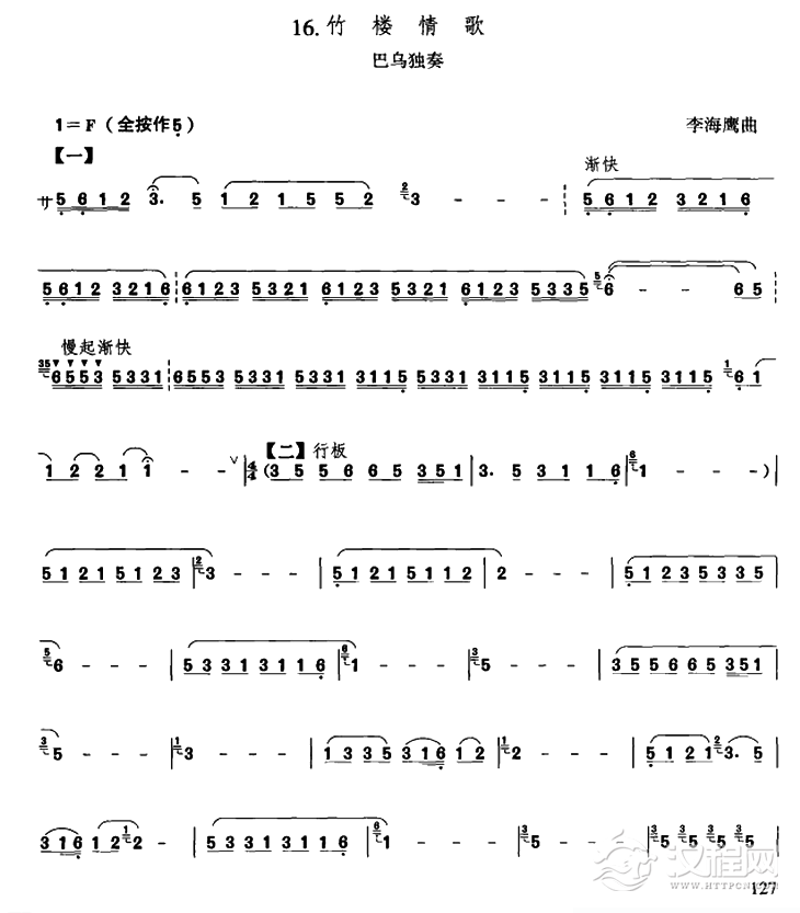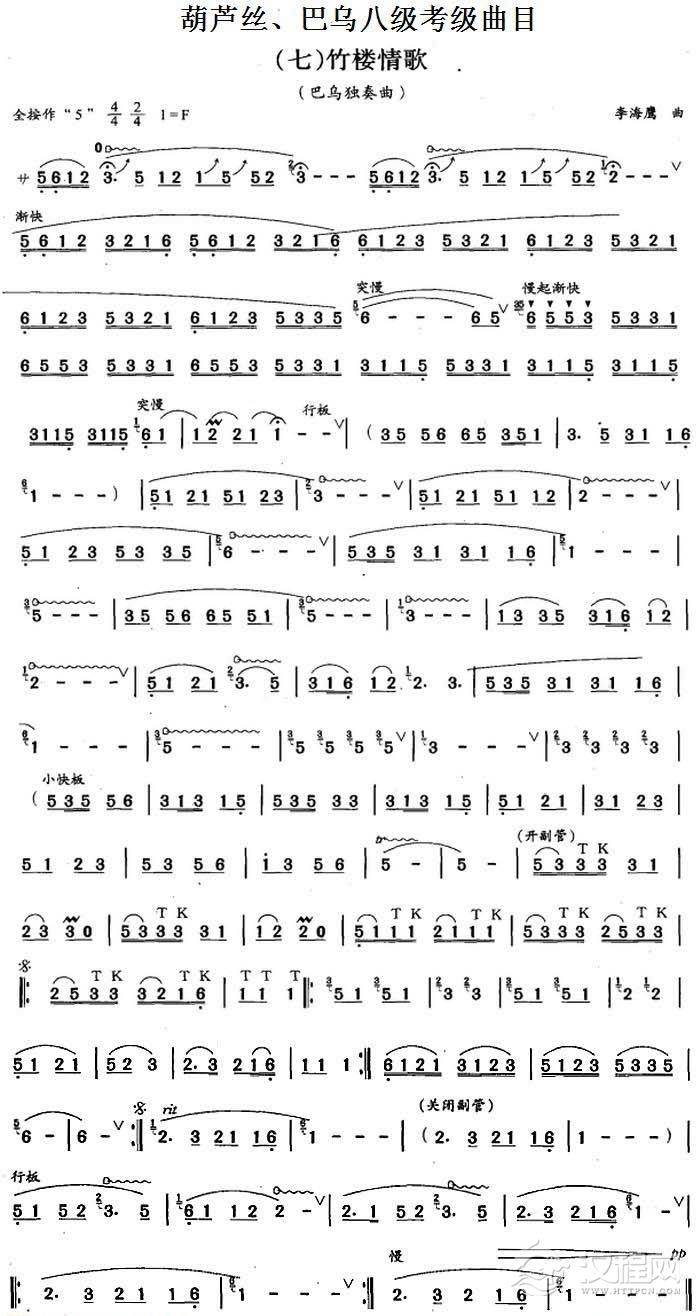 曲谱大全巴乌八级考级曲目练习曲谱
