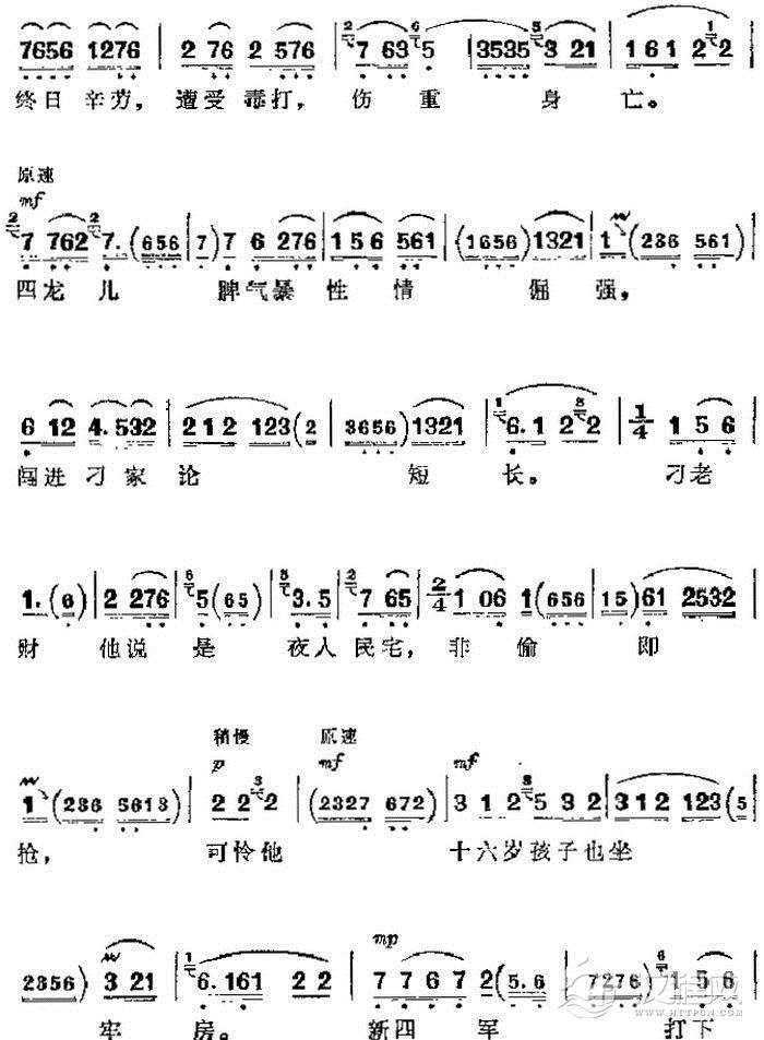 戏曲曲谱[傩堂戏]丫环调(《游城晒衣》梅香唱段)