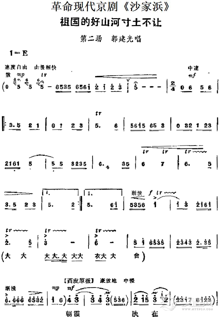 戏曲曲谱革命现代京剧《沙家浜》主要唱段:共产党就象天上的太阳一样(第二场 沙奶奶唱段)