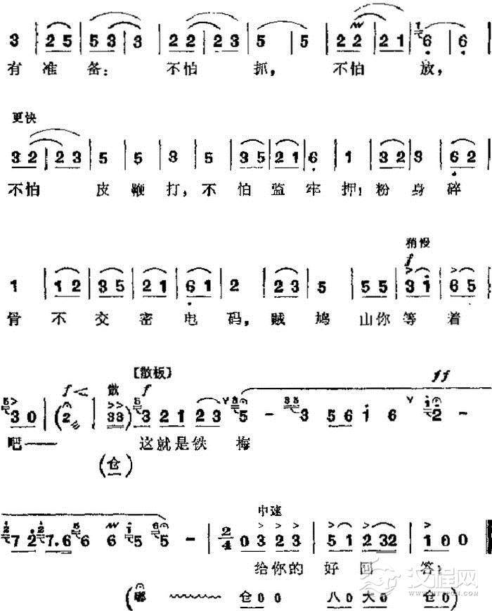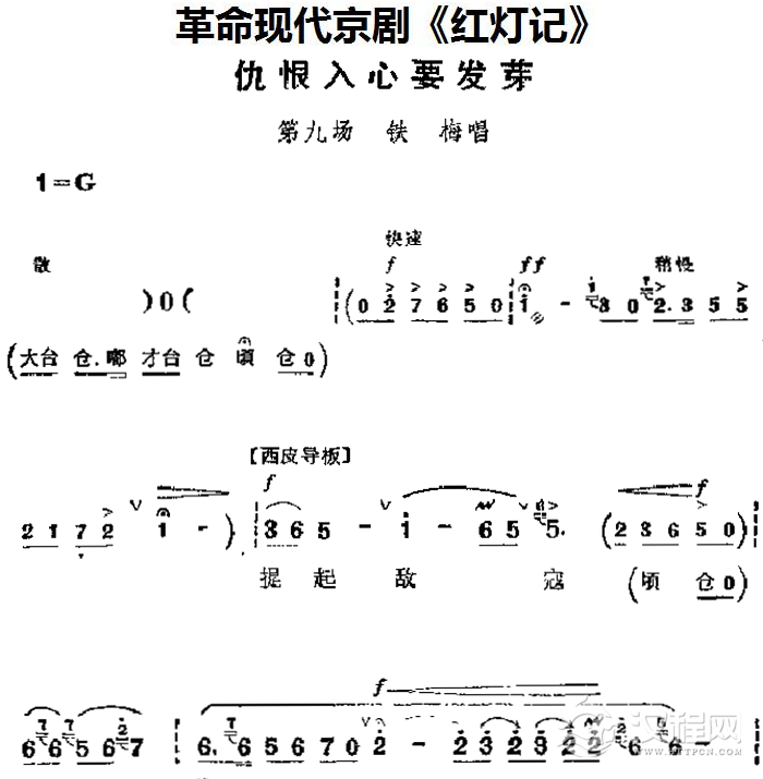 戏曲曲谱革命现代京剧《红灯记》主要唱段:光辉照儿永向前(第八场 铁梅唱段)