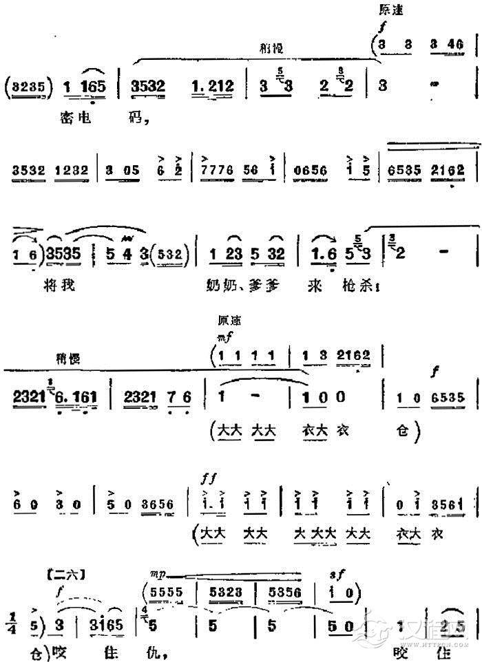 戏曲曲谱[傩堂戏]老生调(《孟姜女》姜文、孟姜女唱段)