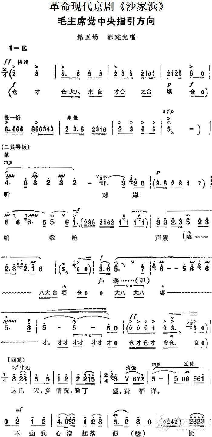 戏曲曲谱革命现代京剧《沙家浜》主要唱段:你待同志亲如一家(第二场 郭建光、沙奶奶对唱)