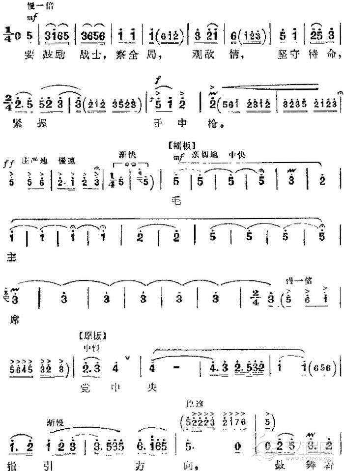 戏曲曲谱革命现代京剧《龙江颂》主要唱段:毛主席把阳光雨露洒满人间(第七场 盼水妈唱段)