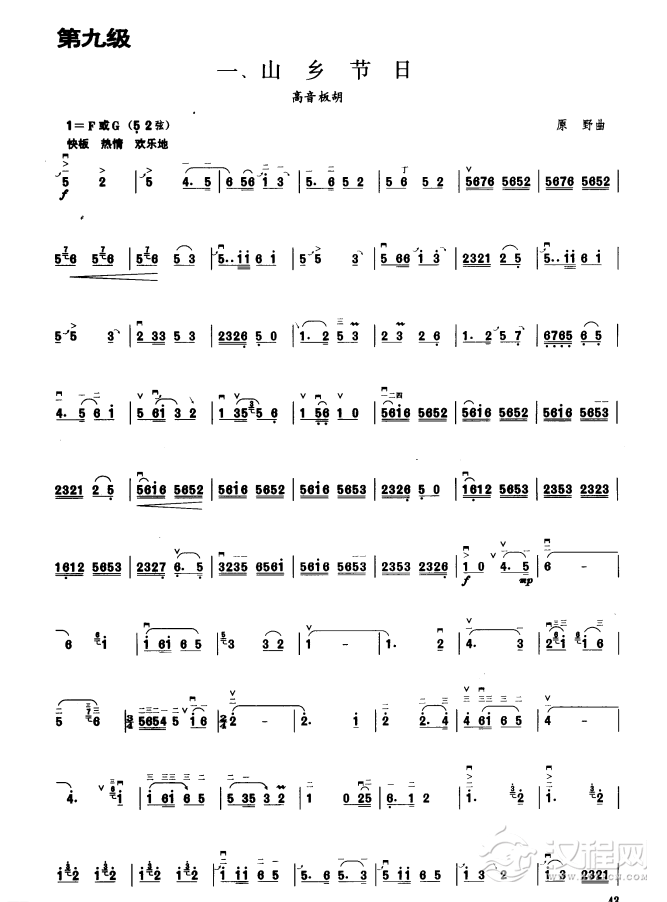 曲谱大全板胡考级曲谱《山乡欢歌》九级
