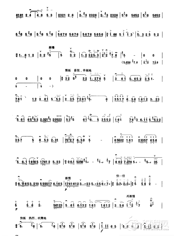 曲谱大全板胡考级曲谱《迎新》三级