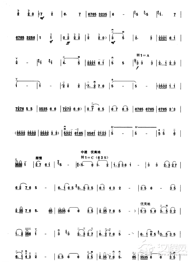曲谱大全板胡考级曲谱《悠悠黄土情》六级