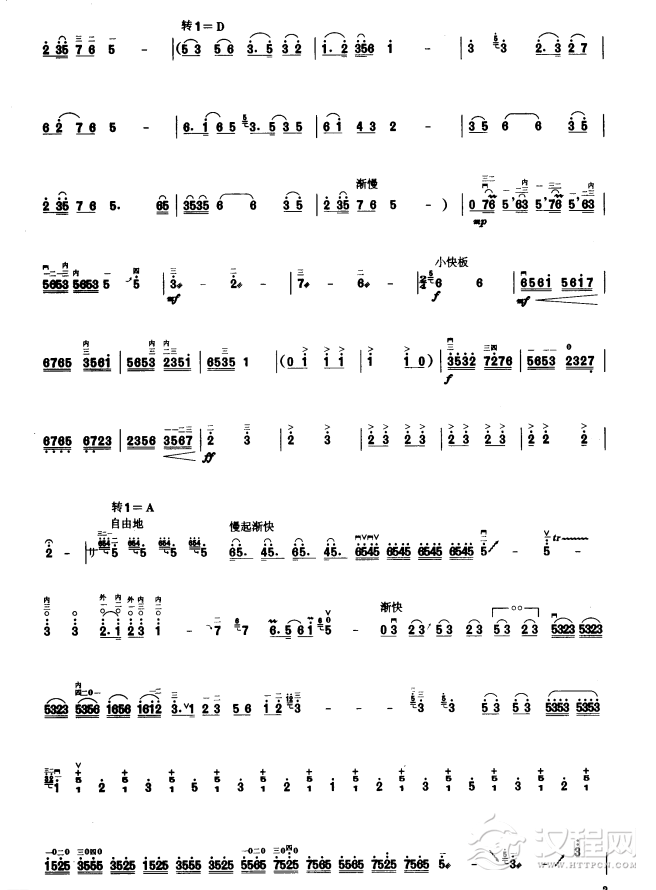 曲谱大全板胡考级曲谱《喜车红马送粮忙》七级