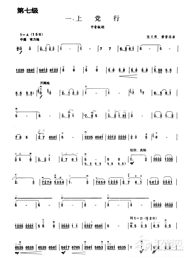 曲谱大全板胡考级曲谱《山乡欢歌》九级