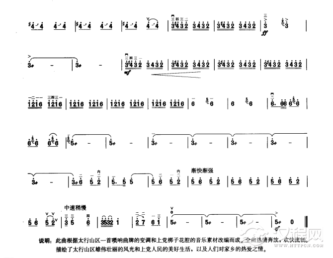 曲谱大全板胡考级曲谱《山乡春来早》五级