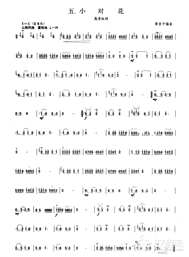 曲谱大全板胡考级曲谱《山乡欢歌》九级