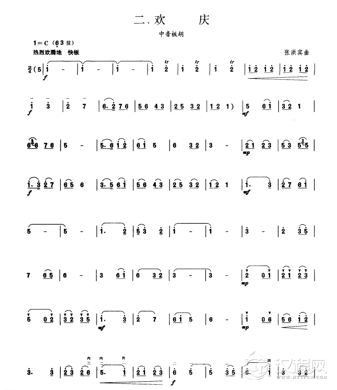 曲谱大全板胡考级曲谱《欢喜》六级