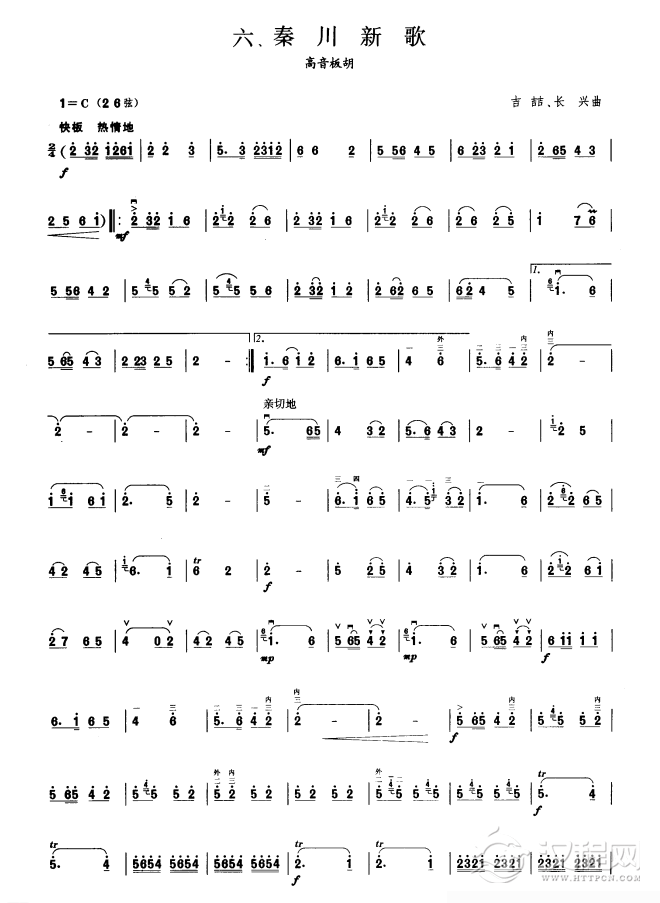 曲谱大全板胡考级曲谱《秦腔牌子曲》十级