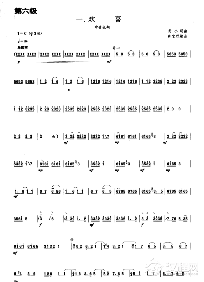 曲谱大全板胡考级曲谱《欢庆》四级