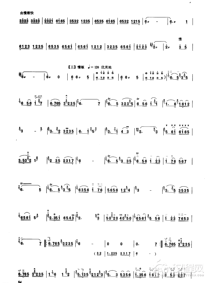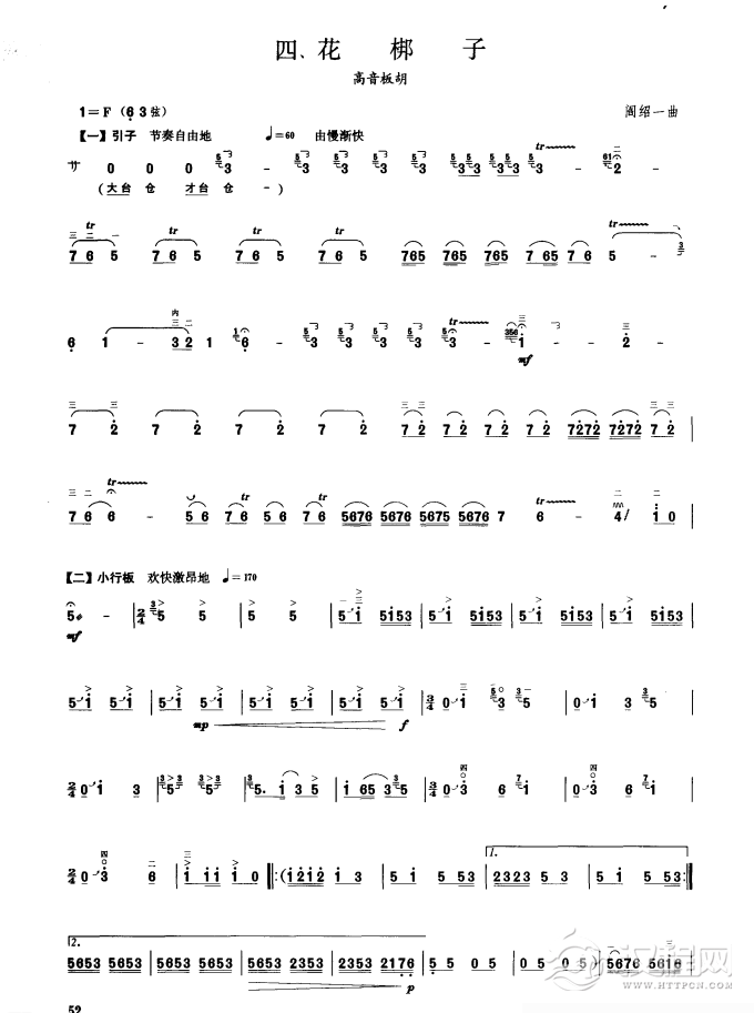 曲谱大全板胡考级曲谱《花儿赞》七级