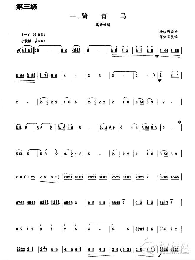曲谱大全板胡考级曲谱《绿州新歌》五级