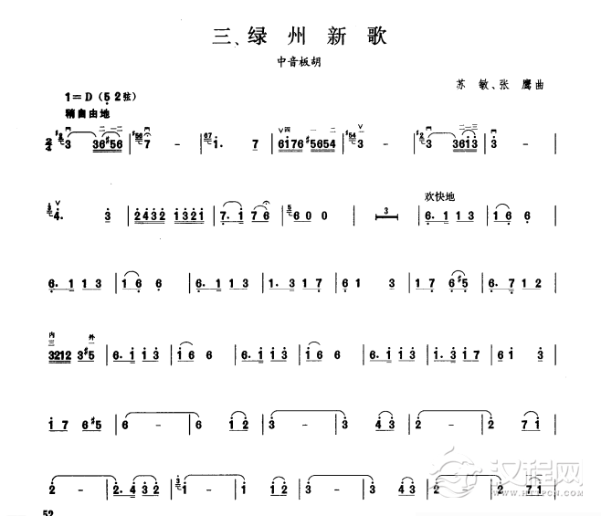 曲谱大全板胡考级曲谱《欢庆》四级