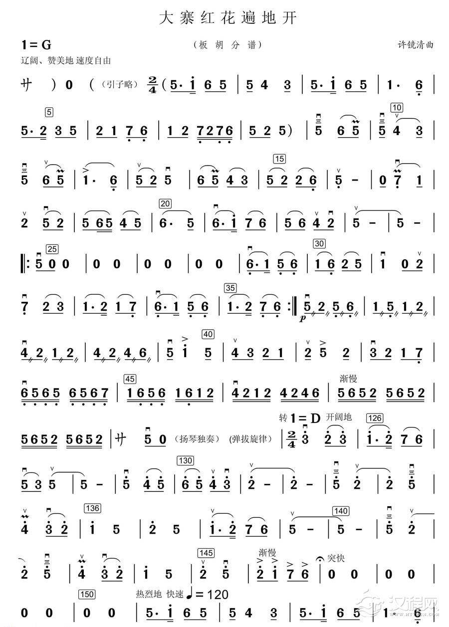曲谱大全板胡谱《大起板》板胡分谱