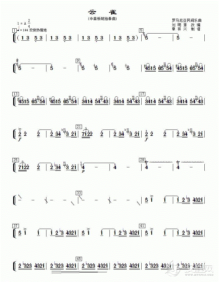 曲谱大全高胡分谱《美丽的凤竹》
