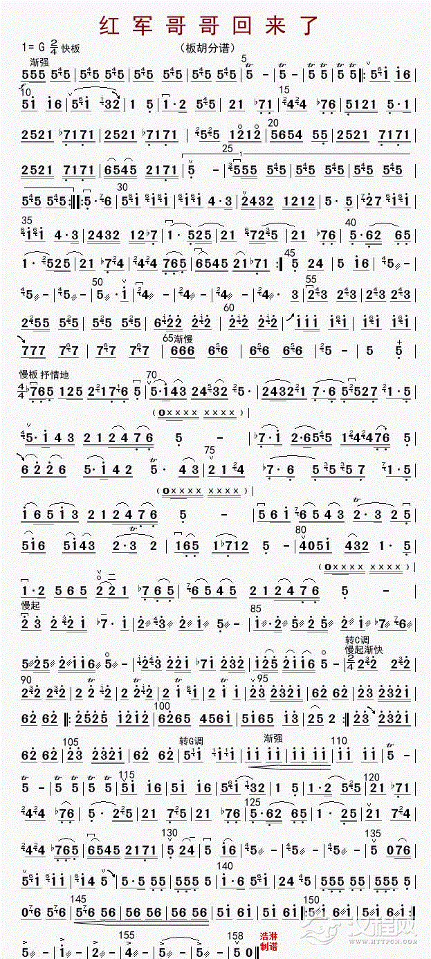 曲谱大全板胡简谱《南泥湾》高音板胡
