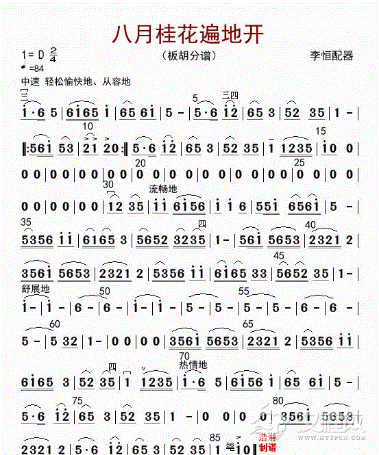 曲谱大全板胡谱《月牙五更》板胡分谱
