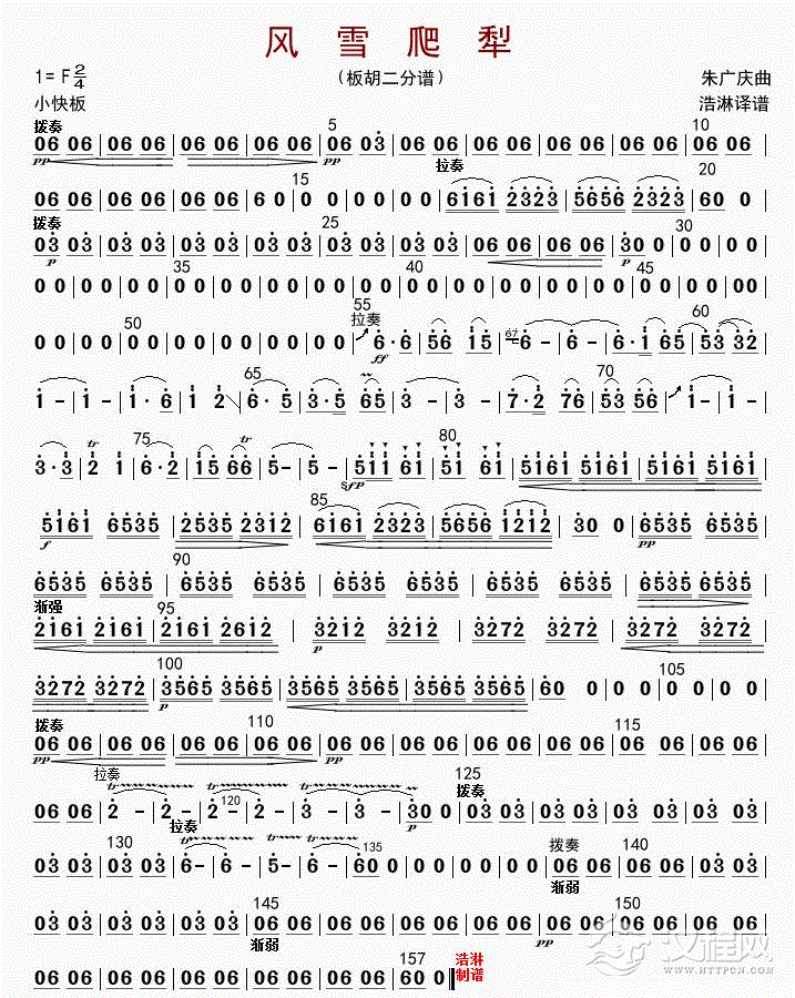 曲谱大全板胡简谱《风雪爬犁》板胡一分谱