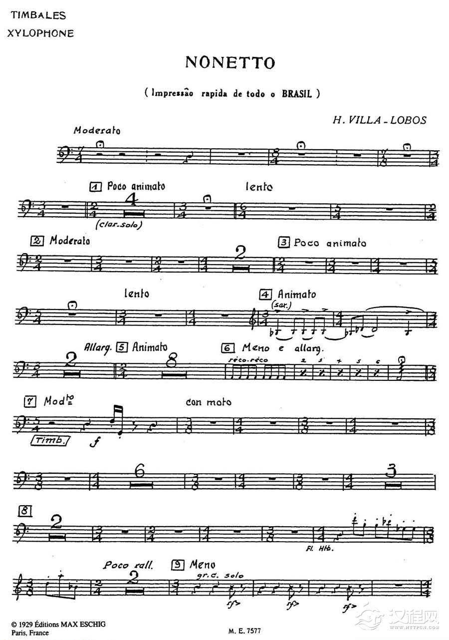 曲谱大全萨克斯四重奏与打击乐《Movement》第一木琴分谱