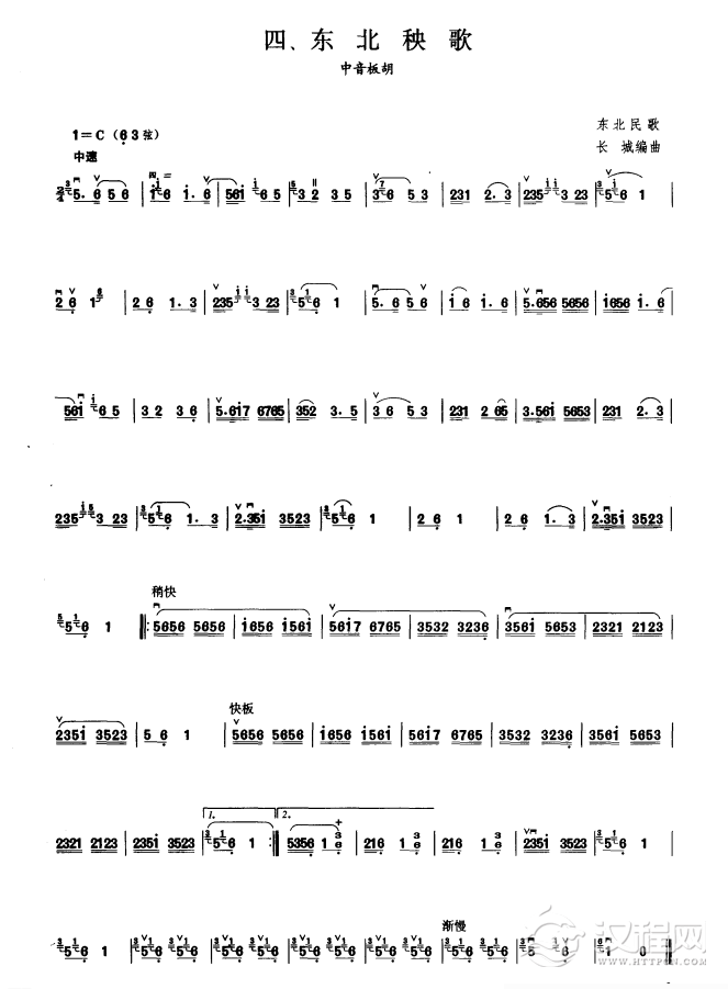 曲谱大全板胡考级曲谱《关东小曲》七级