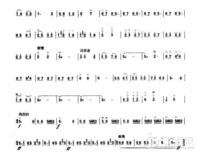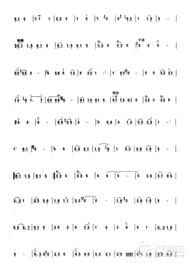 曲谱大全板胡考级曲谱《看秧歌》六级