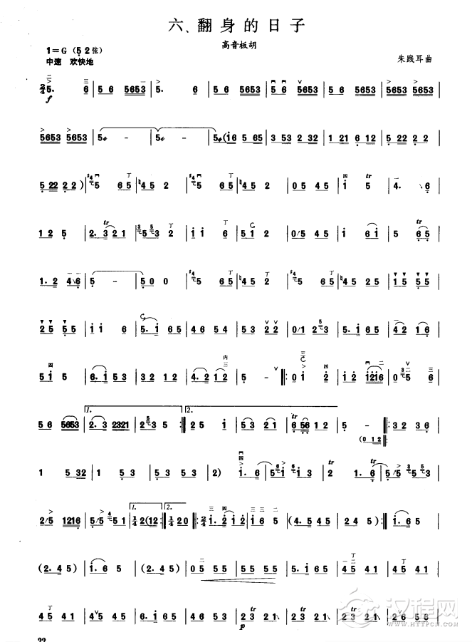 曲谱大全板胡考级曲谱《翻身的日子》三级
