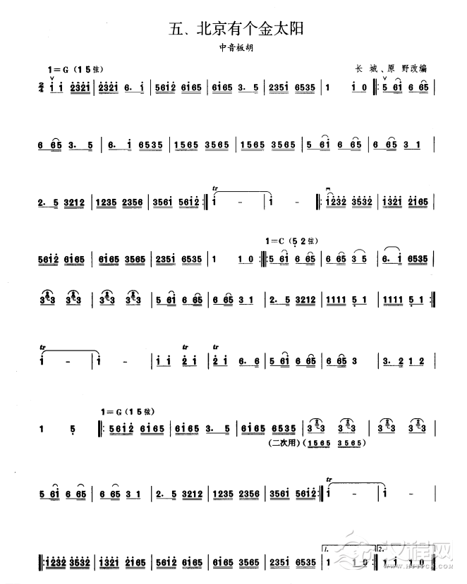 曲谱大全板胡考级曲谱《春城节日》五级