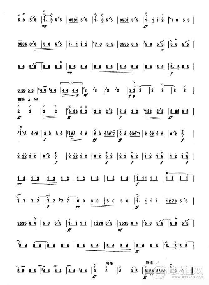 曲谱大全板胡考级曲谱《赶路》四级
