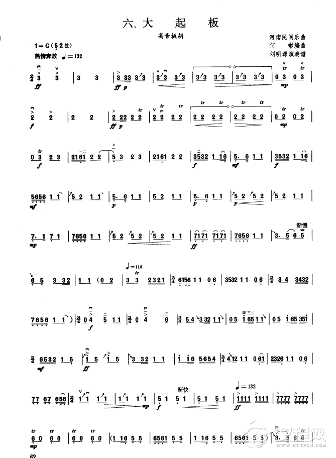 曲谱大全板胡考级曲谱《彩霞》七级