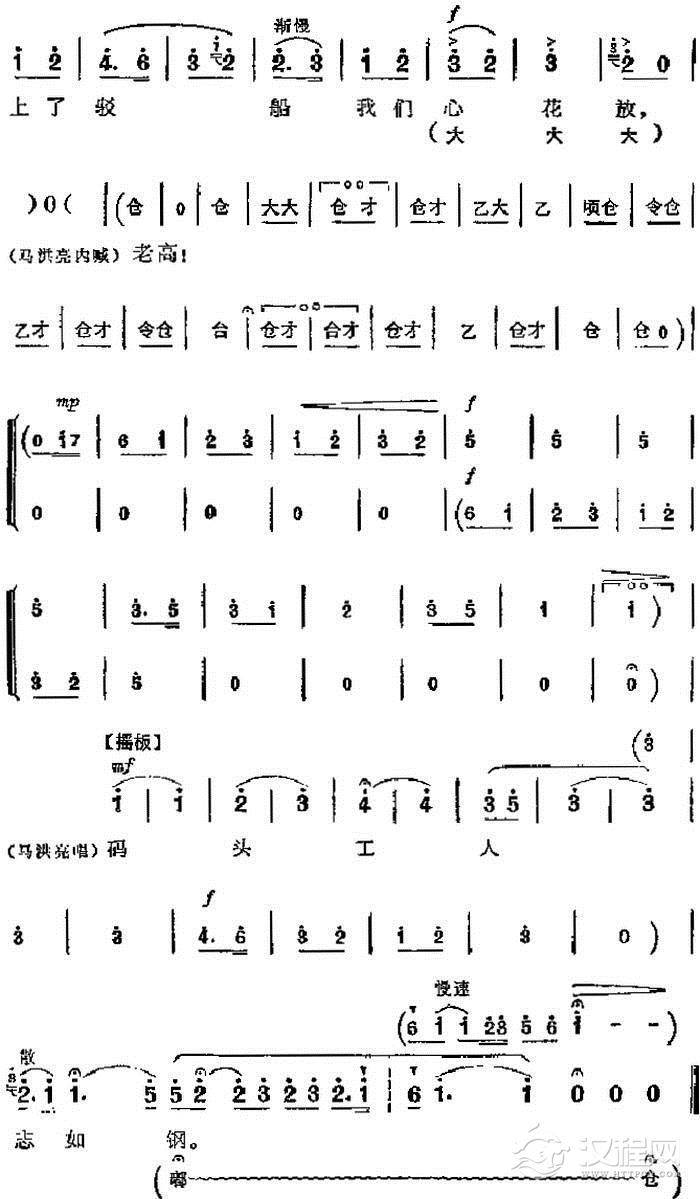 戏曲曲谱革命现代京剧《奇袭白虎团》主要唱段:怒涛汹涌激汉江(第二场 崔大娘唱段)