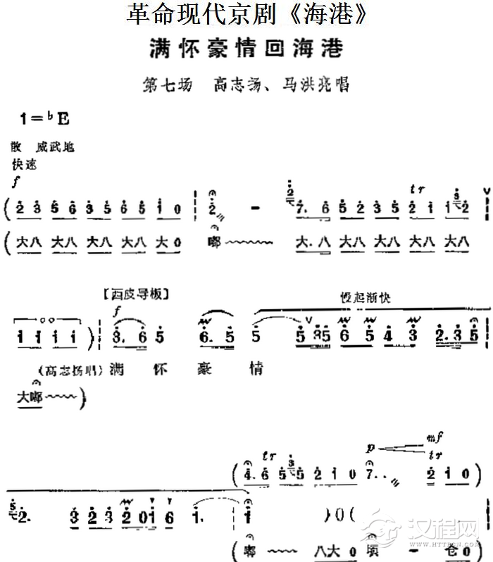 戏曲曲谱革命现代京剧《海港》主要唱段:毛泽东思想东风传送(第六场 方海珍唱段)