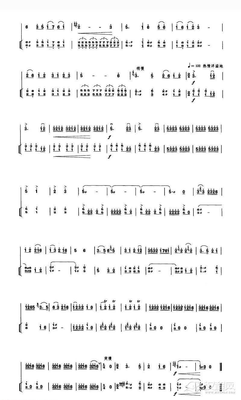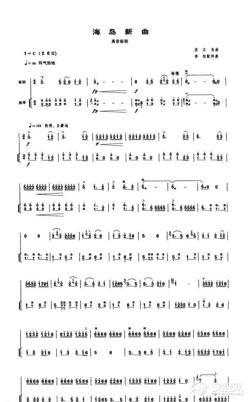 曲谱大全高音板胡独奏曲谱《春城节日》扬琴伴奏谱