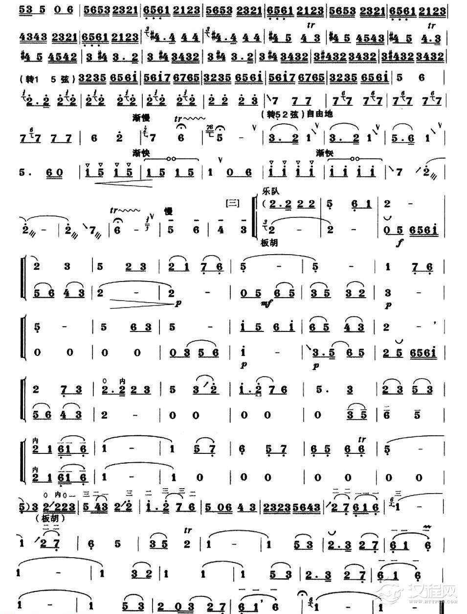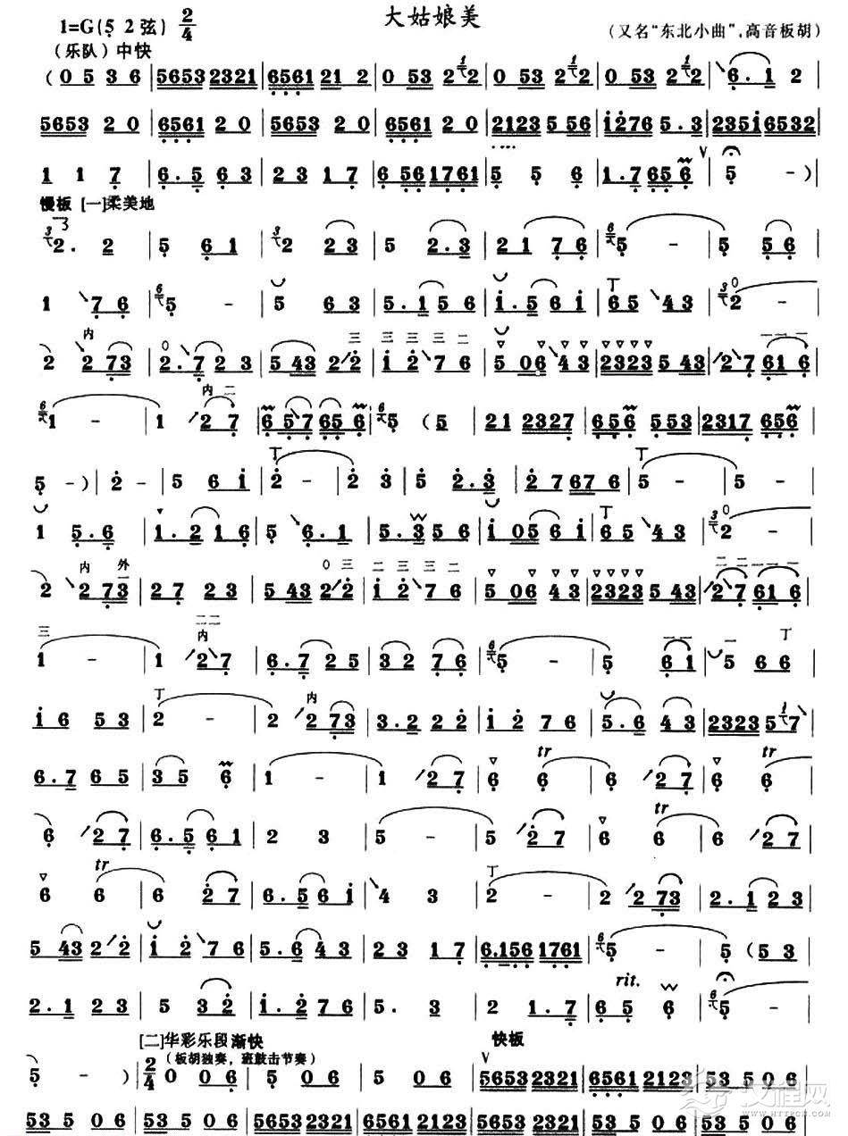 曲谱大全高音板胡曲谱《快乐的驭手》扬琴伴奏谱