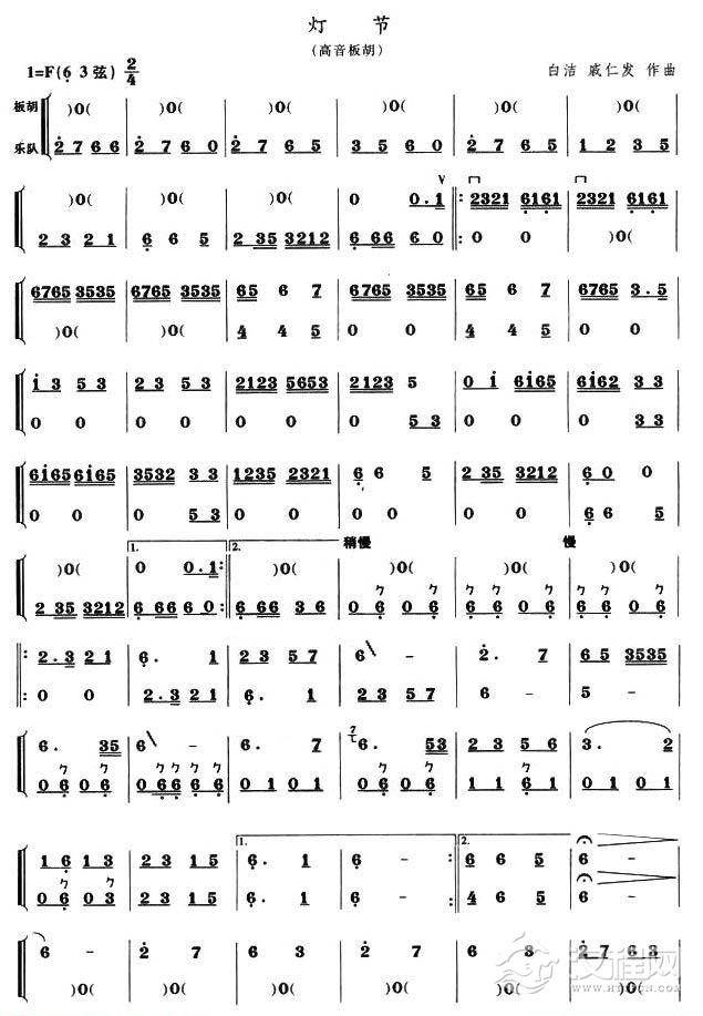 曲谱大全高音板胡曲谱《灯节》扬琴伴奏谱