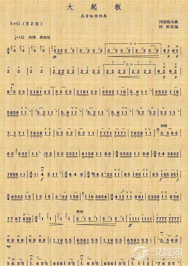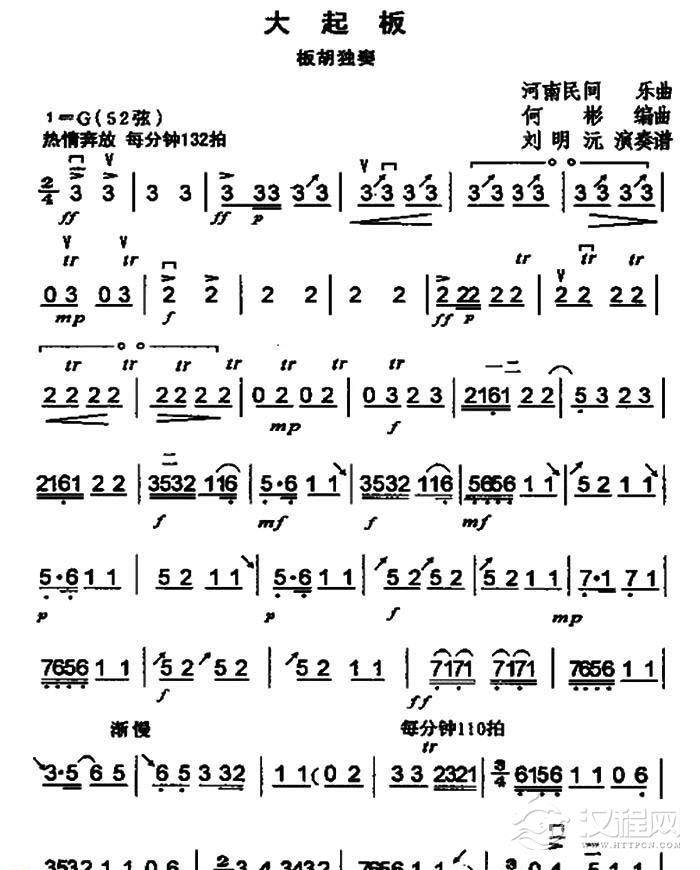 曲谱大全高音板胡曲谱《大起板》扬琴伴奏谱