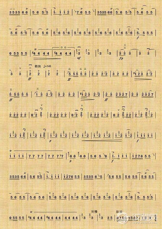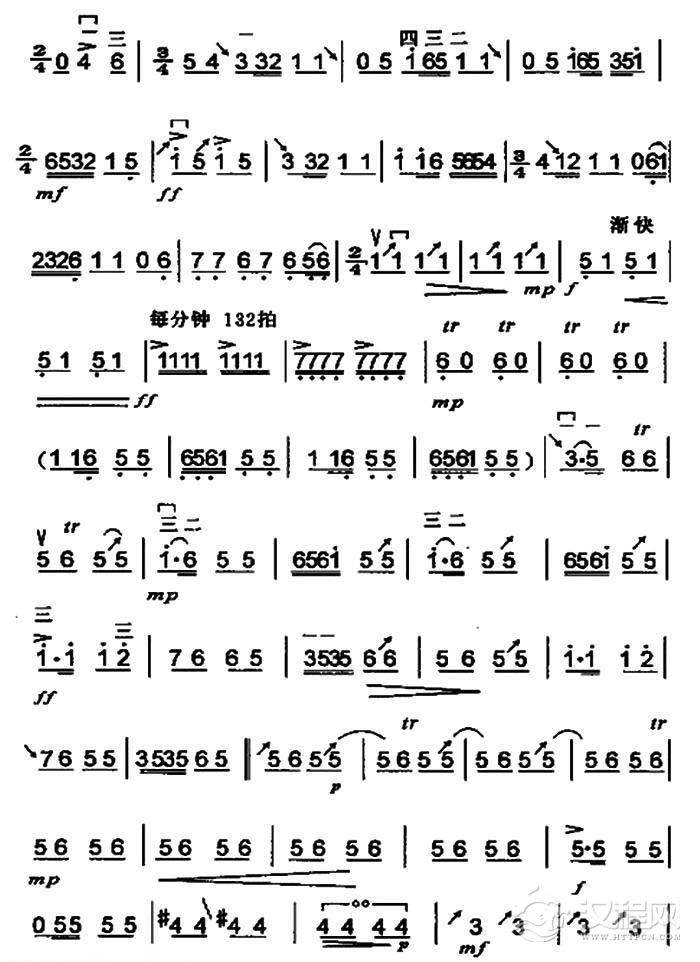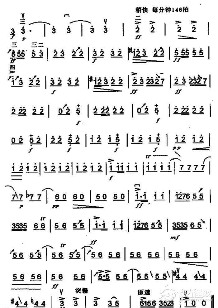 曲谱大全高音板胡曲谱《快乐的驭手》扬琴伴奏谱
