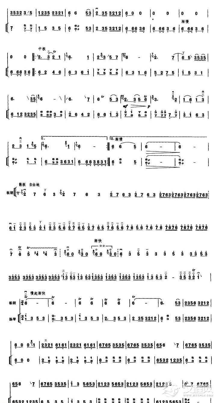 曲谱大全高音板胡曲谱《大起板》扬琴伴奏谱