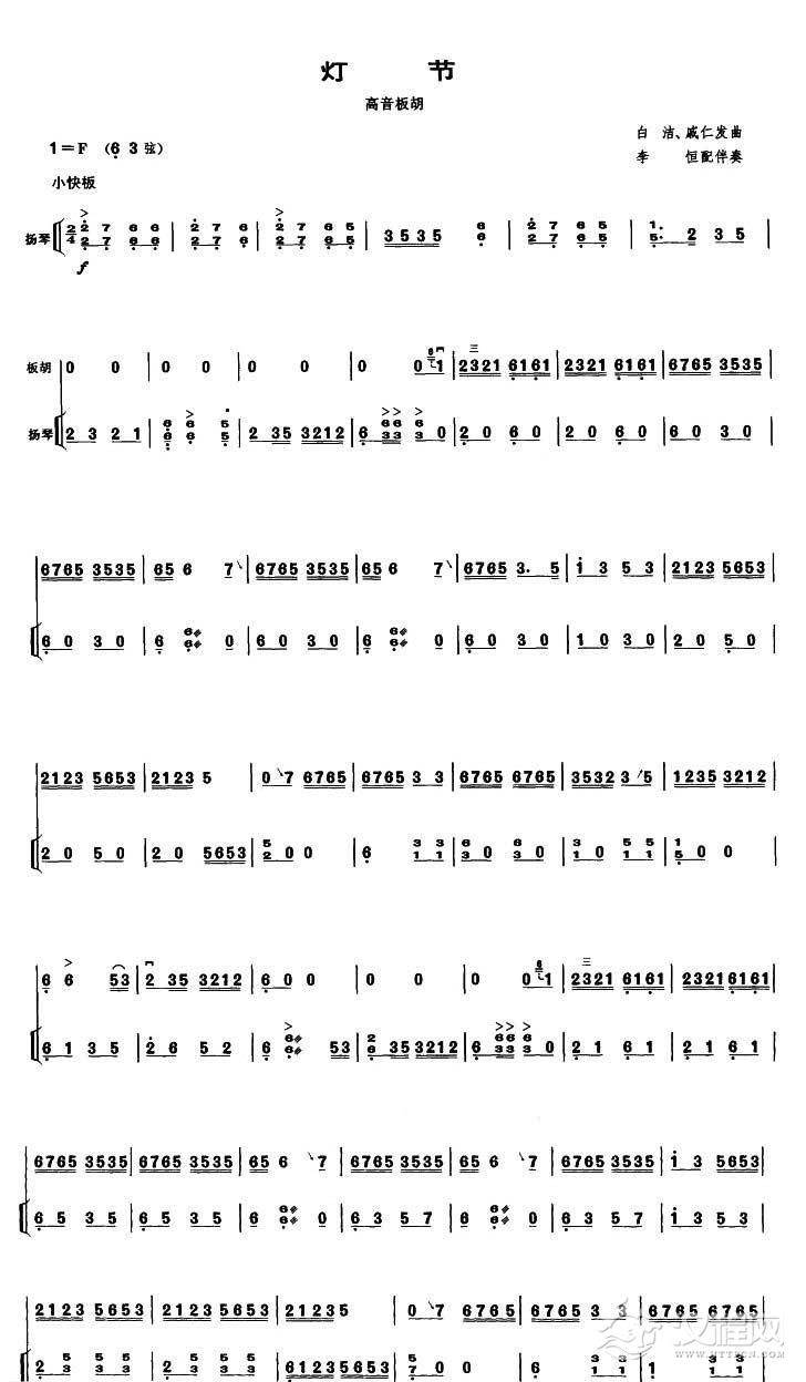 曲谱大全高音板胡曲谱《灯节》简谱