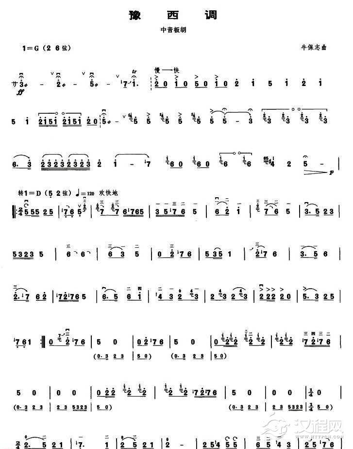 曲谱大全中音板胡独奏曲谱《猪八戒背媳妇》简谱